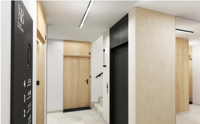 Jednym z wyróżników projektu jest szczególne podejście do przestrzeni wspólnych. Deweloper postawił na rozwiązania, które realnie wpływają na komfort mieszkańców – również w dłuższej perspektywie użytkowania budynku.